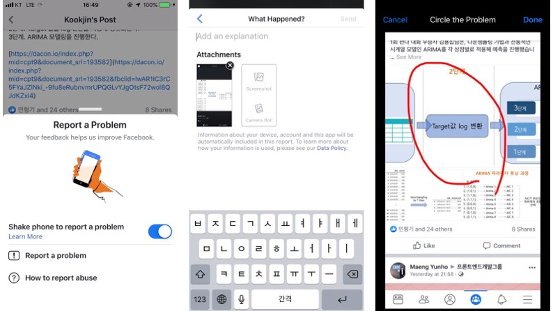 *참고 아티클 - 페이스북은 당신의 에러 리포팅을 "핸드폰을 흔드는 것 만큼" 간편하게