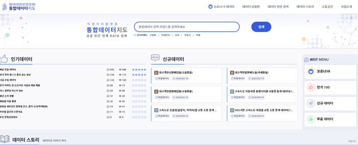이렇게 각 분야별로 전문 구축된 빅데이터 플랫폼은 과기정통부 산하의 통합데이터 지도(’20/03 개시)와 연계하여 통합적으로 활용될 수 있도록 합니다. 빅데이터플랫폼 통합 데이터 지도는 다음 사이트에서 확인해볼 수 있습니다.