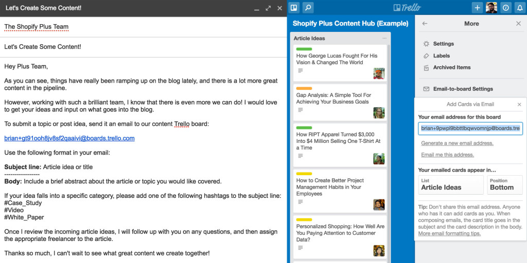 또 트렐로는 이메일과 상당히 호환이 잘되는데 내가 assign 된 카드에 수정사항이 생기면 바로 이메일로 알림이 온다. 그걸 받고 싶지 않은 사람도 이메일 하단의 unsubscribe 눌러서 다른 알림메일과 같은 방식으로 차단 할수도 있고, 각 카드에 부여된 카드의 email address를 To로 걸어서 카드에 코멘트를 남길 수 있다. 그래서 이메일 베이스로 일하던 사람들도 두개 호환이 되니까 이게 전혀 다른 툴이라고 느끼지 않는 것 같다.