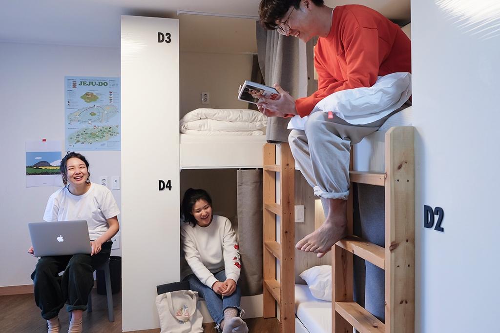 한라산과 구제주 도심 뷰가 있는 도미토리, 삼분의 일 토퍼가 있고, 일층 맬맥집에서 타인과 도란도란 이야기 나눌수 있고, 내 어린 날의 열정이 남아 있는 이곳에.
