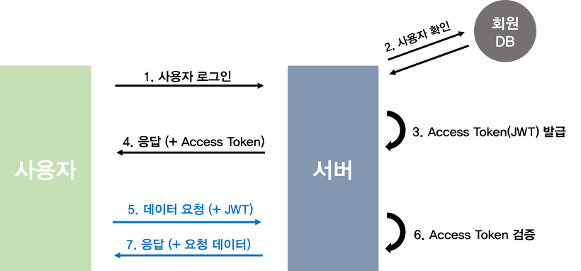 4. 서버는 사용자의 토큰 정보를 검증한 뒤(복호화 등), 사용자의 권한을 확인하고 인가 요청을 처리해줍니다.