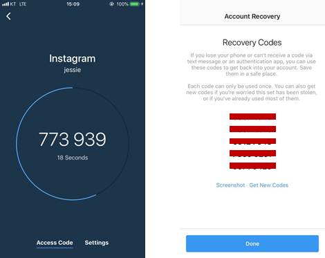 ์ธ์คํ๊ทธ๋จ์ 2FA ๋ฑ๋ก์ ์๋ฃํ๊ณ ๋ ํ์๋ ํด๋ํฐ์ ์์ด๋ฒ๋ฆด ๊ฒฝ์ฐ๋ฅผ ๋๋นํ์ฌ ๋ณต๊ตฌ ์ฝ๋๋ฅผ ์๋ดํด ์ค๋๋ค. ์์ ํ ๊ณณ์ ๋ณต๊ตฌ ์ฝ๋๋ค์ ์ ์ ์ฅํด ๋์ธ์.