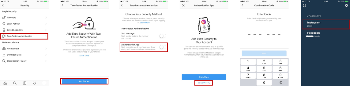 ๋ํ, ์ธ์คํ๊ทธ๋จ์์ 2๋จ๊ณ ์ธ์ฆ์ ํด์ ํ ํ ์ฐจํ ์๋ก์ด ํธ๋ํฐ์ IBM Verify๋ฅผ ๋ค์ด๋ฐ์ ํ ์๋กญ๊ฒ 2๋จ๊ณ ์ธ์ฆ์ ์งํํ์ธ์.