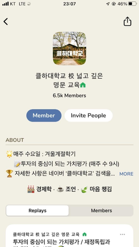 클하대학교도 마찬가지입니다. 양질의 컨텐츠와 세상에서 제일 열심히 사는 한국사람들이 모여서 성공적인 채널을 만들어 낸 겁니다. 어디서도 배우지 못했던 세상을 읽어내는 법을 식견 넓은 마스터와, 열정 넘치는 모더레이터와 함께하는 공간을 찾고자 하는 니즈를 마음 속에 품었던 분이 많았던 거죠.