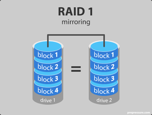 미러라는 말 그대로 2개의 100GB의 디스크가 있다면 총 100GB를 사용할 수 있으며 그 이유는 A라는 디스크에 들어있는 데이터를 B라는 디스크에 싱크를 하고 있습니다.