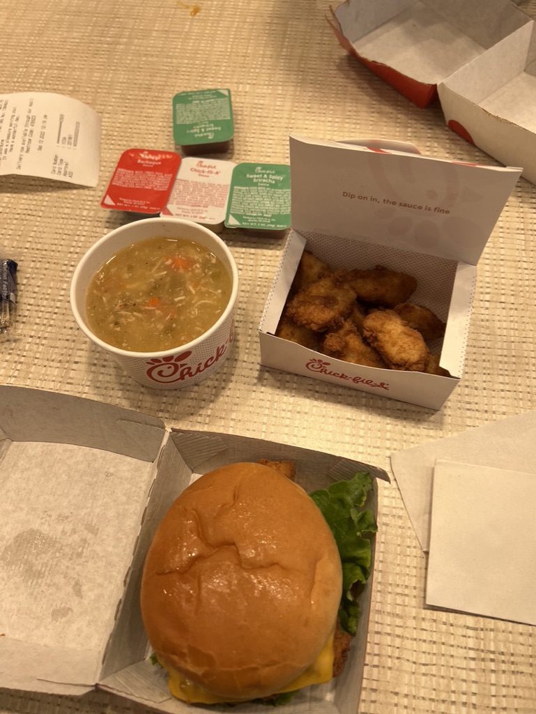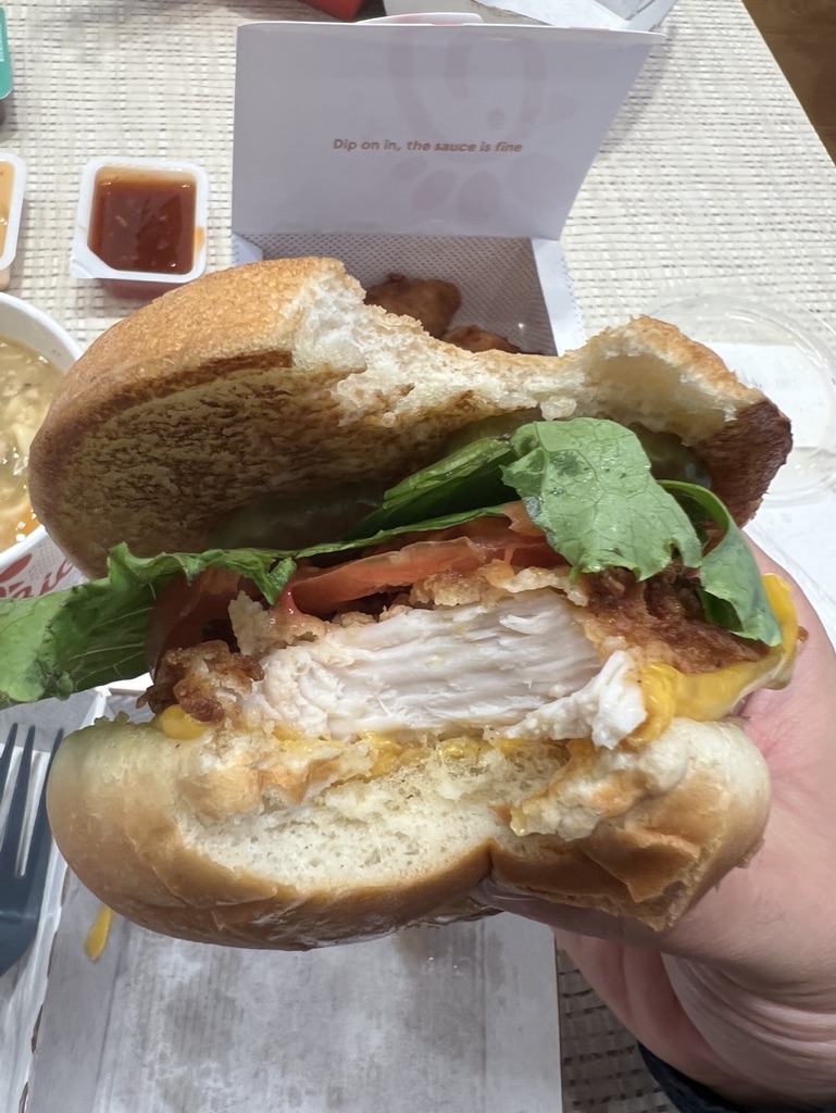 점심은 요새 미국 햄버거의 새로운 트렌드라는 Chick-Fil-A에서 치킨 샌드위치를 먹어보았다.
