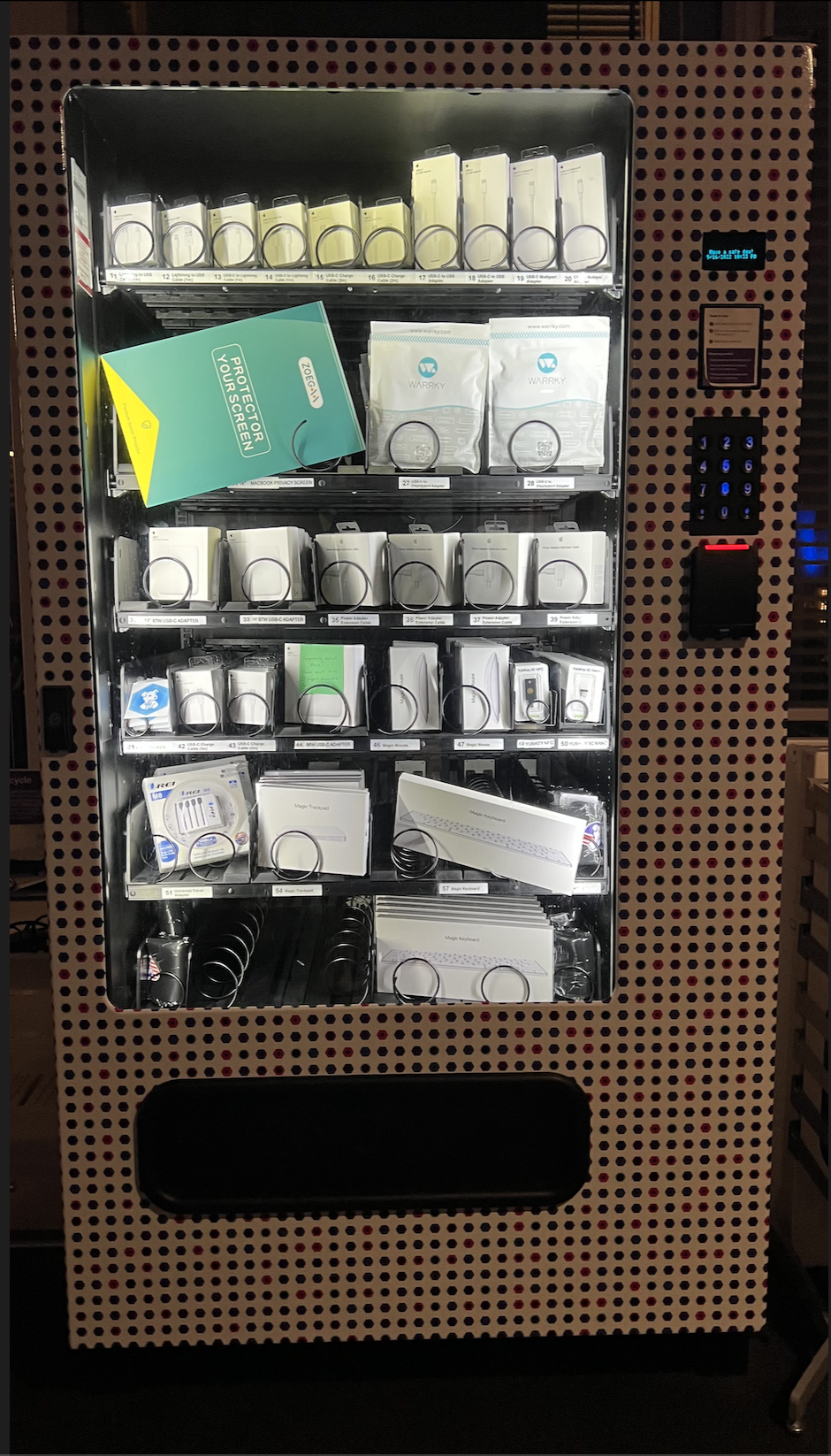 특히, 제가 가장 놀랐던 건 애플 자판기였습니다. 애플 관련 액세서리를 필요할 때 원하는 만큼 자유롭게 뽑아서 쓸 수 있었습니다.