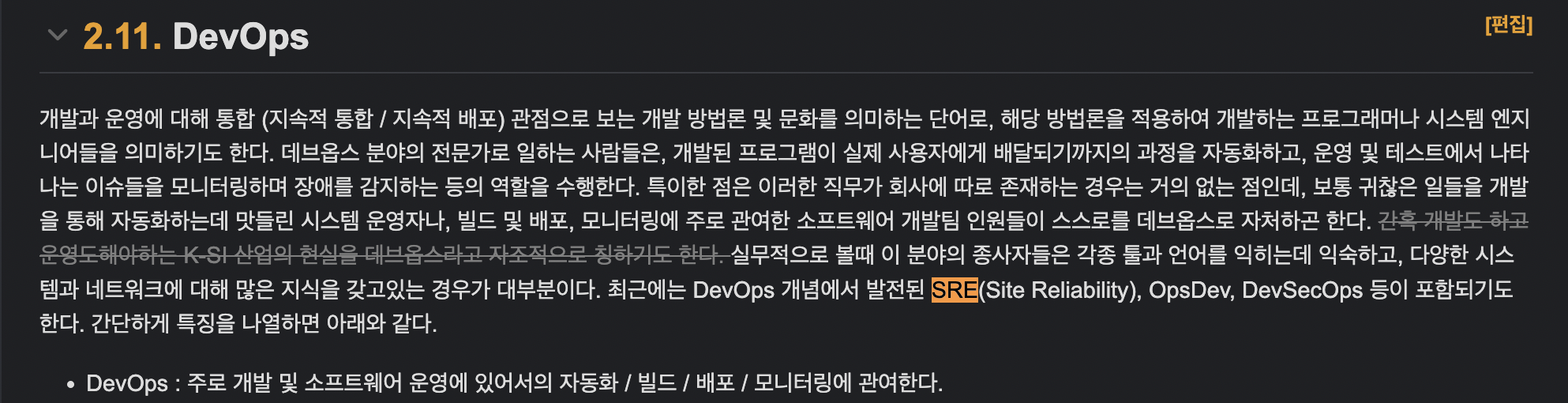 이 문화라는 말이 들어가는 순간 저는 애매하다는 생각을 합니다. 난 DevOps엔지니어가 되고 싶은데 문화를 다루는 엔지니어? 라는 생각을 하게되면서 뭔가 혼종이 되어가는 느낌입니다.