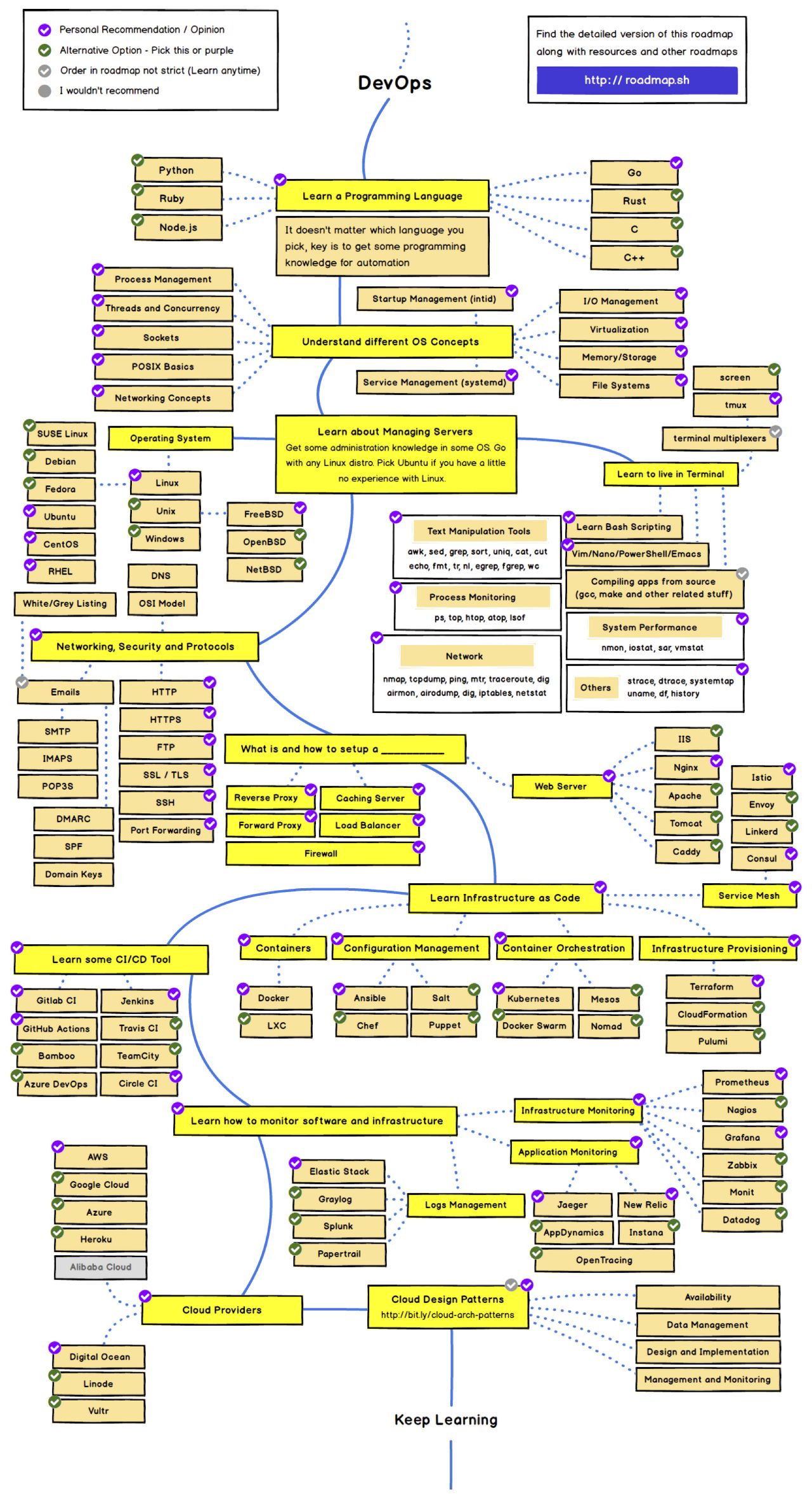 Programming language부터 OS, Frontend, Backend, Network, Cloud, Security 등 온갖 기술들이 DevOps에는 섞여있습니다.