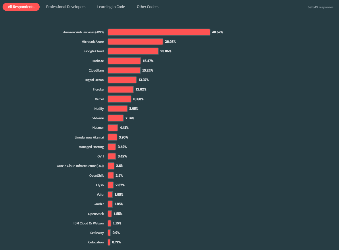 - 개인 호스팅에서 강점이 있는 firebase, cloudflare, digital ocean, heroku, netlify도 강세를 보이네요.