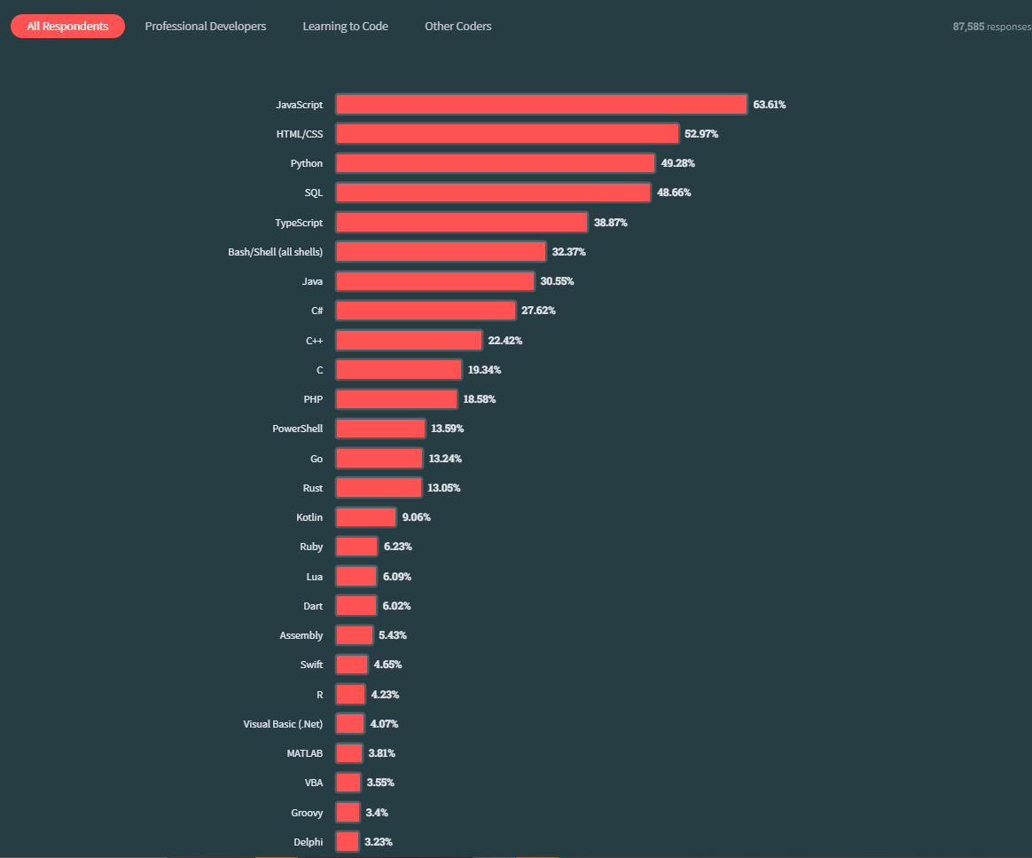 - Html과 Python이 그 뒤를 잇습니다.