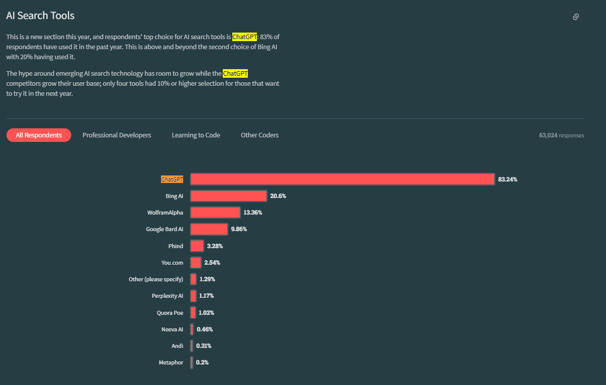 - 46400명이 응답했습니다. (한국의 비율은 204명, 0.23 프로의 응답자입니다.)