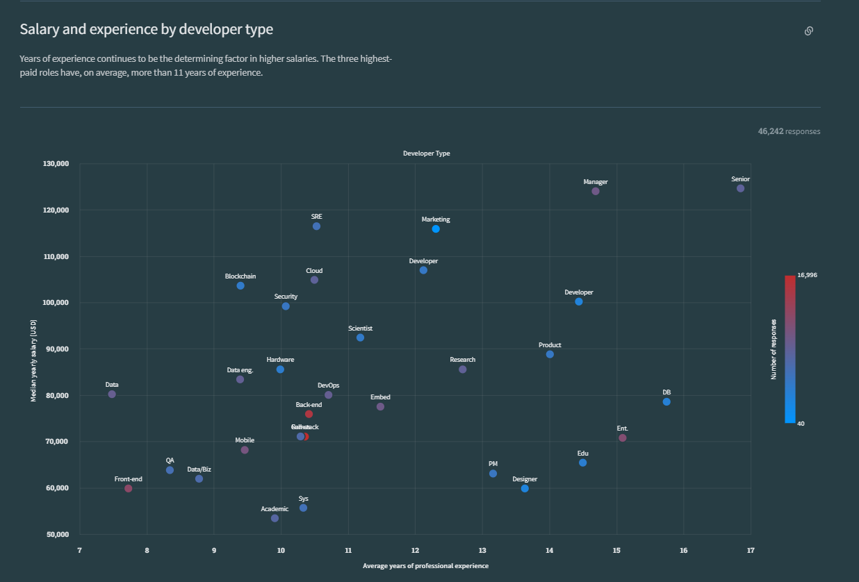 - 연차가 낮은데 돈은 많이 받는 직군 : data, Blockchain, Cloud, SRE, Marketing, Developer