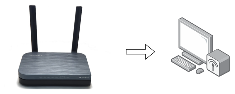 그러니깐 저 sk broadband 에서 LAN cable이 나와 제 컴퓨터에 연결되어있고 wifi 기능까지 구현해냅니다.