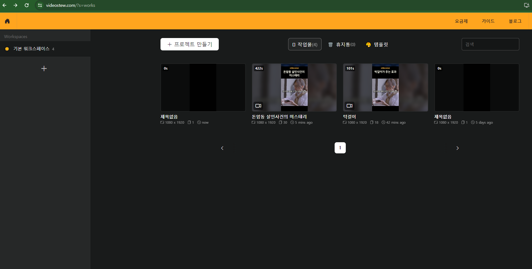 일단 비디오스튜의 장점은 어이없을 정도로 간단하다는 건데요, 이 메인화면 로그인창에서 프로젝트 만들기하고 저 대본을 그대로 복사 붙여넣기하면 끝입니다.