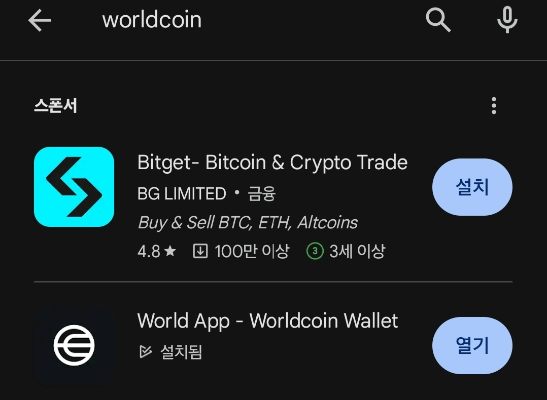 1. Play store에서 Worldcoin 검색 후 앱깔기 (또는 앱스토어겠죠)