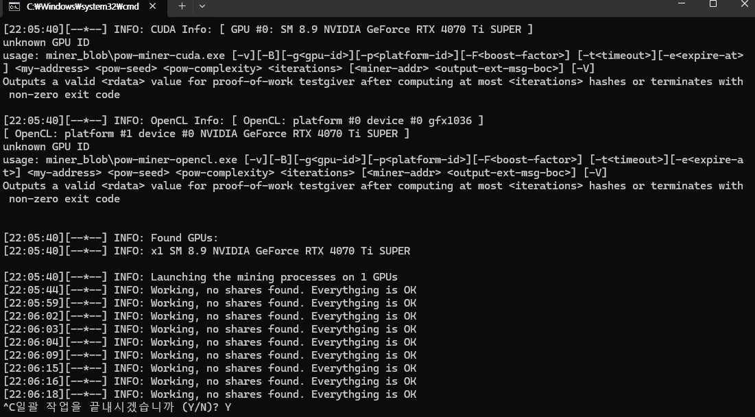 ctrl + c 로 작업을 종료할 수 있습니다.