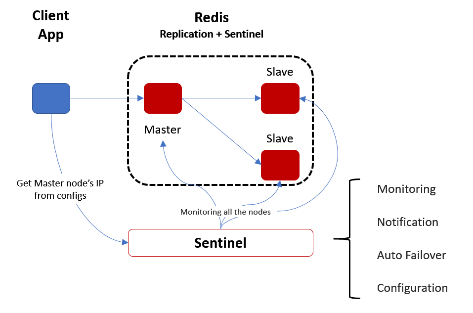 - Redis Sentinel로 장애 발생을 감지해 (한번의 장애가 아닌 정족수를 넘게 장애로 판단되는 노드를 장애로 간주함), 슬레이브를 마스터로 승격시킬 수 있습니다. 이로써, 다른 노드로 대체가 가능해집니다.