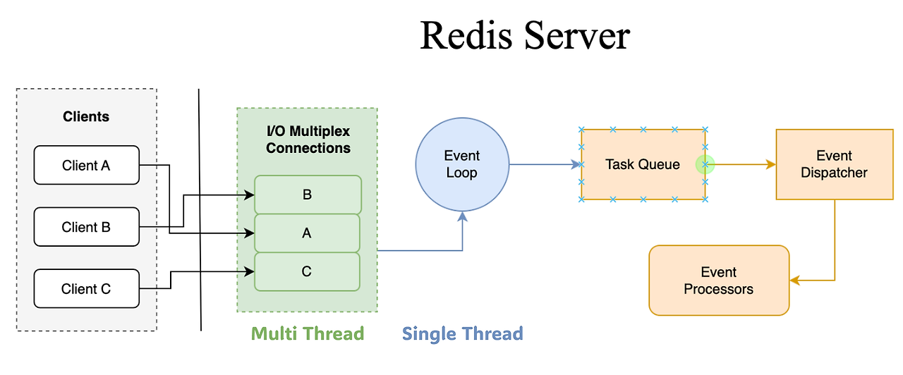 - Redis는 기본적으로 싱글 스레드 형식의 Event Loop 방식이며, I/O Multiplexing을 통해 여러 클라이언트의 요청을 효율적으로 처리합니다.