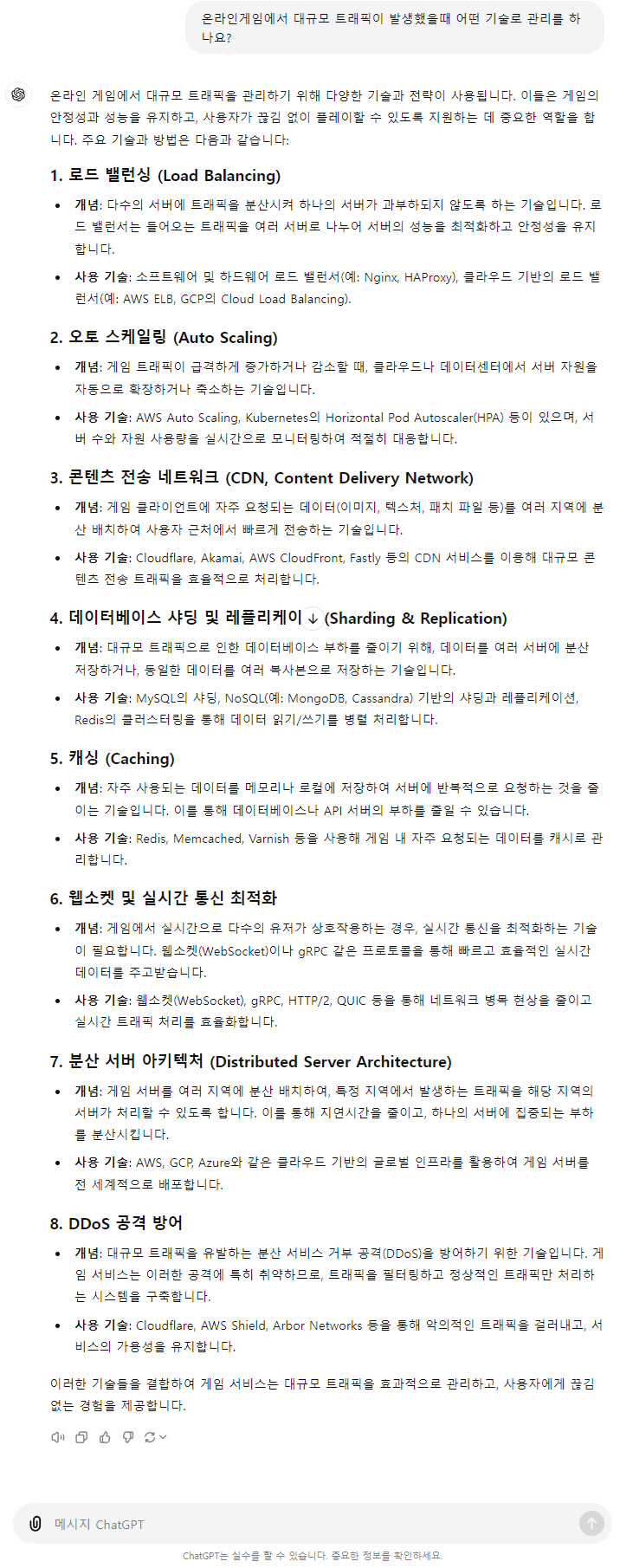 게임업계에 대해 이해도 낮기에 생성형 AI로 게임업계가 많은 트래픽을 어떻게 관리하는지에 대해 찾아보았습니다.