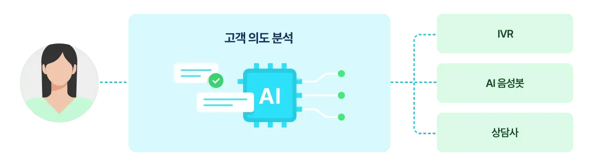 고객의 의도를 정확히 분석하여 라우팅하는 똑똑한 지능형 라우팅 서비스 고객의 의도를 분석해 단순 반복 문의는 AI 음성봇이 응대하도록 연결하고, 고객이 직접 처리할 수 있는 서비스는 셀프서비스로 연결하며, 전문 상담이 필요한 경우에는 상담사에게 연결합니다. 똑똑한 지능형 라우팅 서비스로 고객 대기 시간을 줄이고 불만을 최소화합니다.