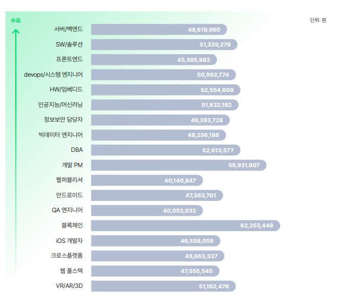 서버/백엔드, SW, 프론트엔드, 시스템 엔지니어 모두 높습니다.