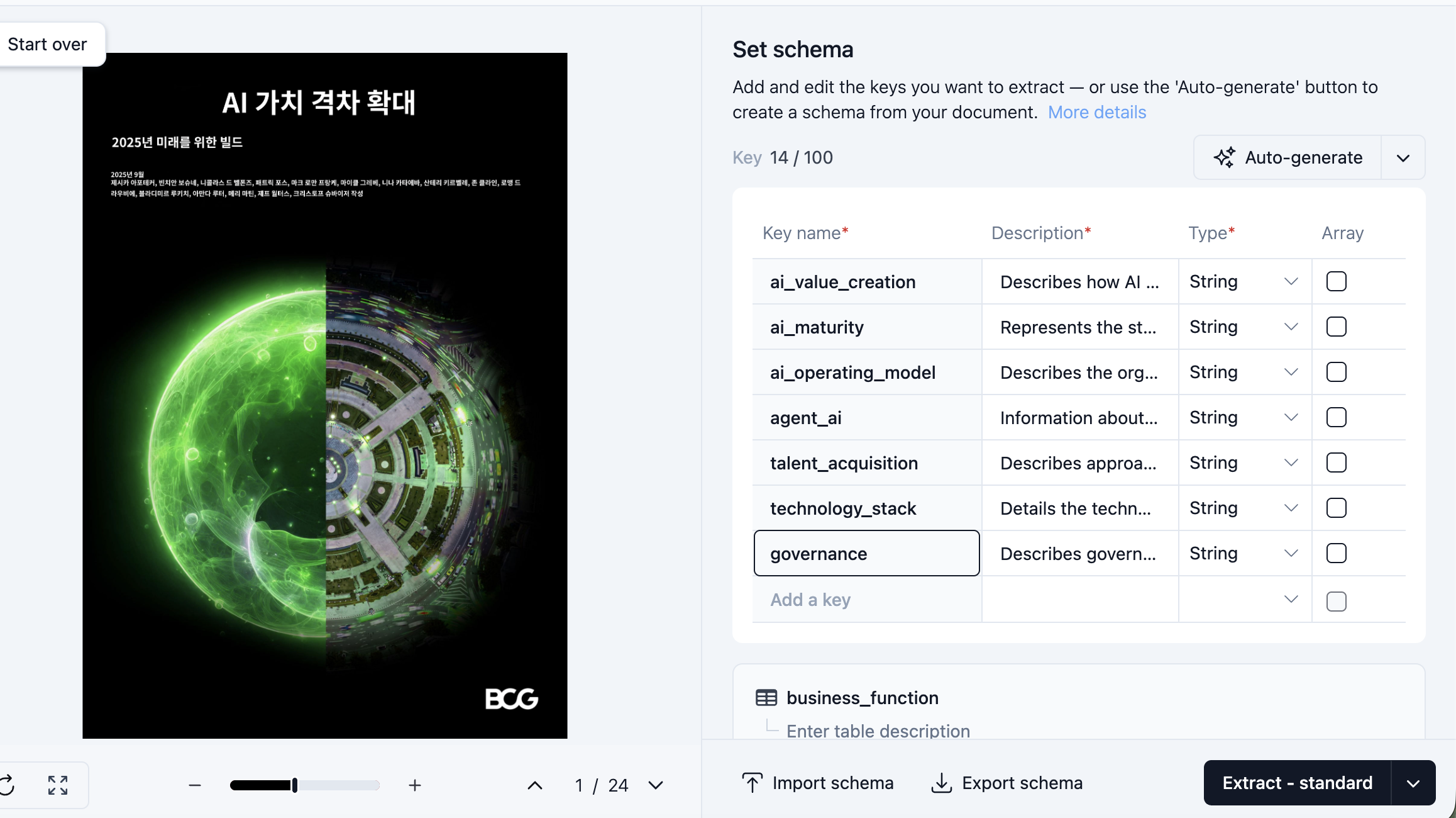 Extract는 어떤 문서에서 Json 형태로 Key/Value값을 추출해서 Schema로 정의하는 기술인듯합니다.