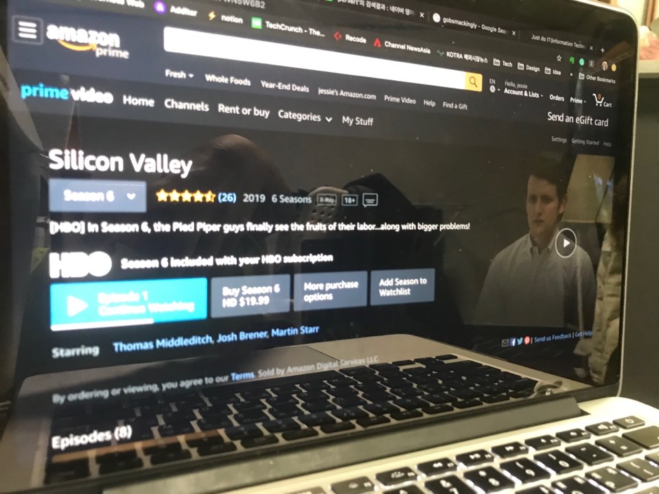 그래서 찾은 대안은 아마존의 프라임 비디오.(국내 아마존 프라임 아니고 미국 서비스로 이용해야됨. 국내용 서비스는 실리콘밸리 IP가 없어서 볼수 없다.) 아마존 프라임 진심 콘텐츠도 그렇고 화질 UX 전부다 갑이다. VPN으로 봐도 끊김없이 1080P 지원하는 미친 서비스. 만약 영어에 대한 거부감이 없다면 한국에서 구독해도 괜찮을 것 같다.